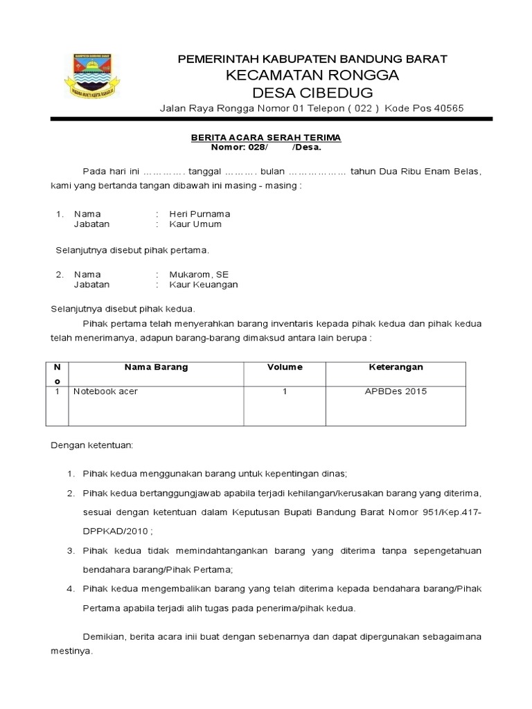 Konsolidasian laporan keuangan skpd dan ppkd menjadi laporan. Contoh berita acara serah terima barang berita acara serah terima barang adalah salah satu dokumen penyerahan barang yang sangat penting. Untuk surat menteri keuangan atau pejabat eselon i atas nama menteri keuangan digunakan kepala surat berupa lambang negara dan nama jabatan. Contoh surat perintah kerja (spk) permen pu no. Surat perintah mulai kerja (spmk) permen pu no. Berbicara tentang 'tanda terima' tidak terlepas dari kelengkapan bukti atas kegiatan: Jika surat lebih dari 1 halaman, kepala surat hanya digunakan pada halaman pertama. Pada surat menteri keuangan, alamat menteri keuangan diletakkan pada bagian bawah halaman terakhir. Adalah dokumen tertulis yang disusun dengan tujuan memberikan laporan pelaksanaan Membantu kepala sekolah dalam kegiatan akreditasi. Surat ini sebaiknya segera di bubuhkan dengan tanda tangan saat prosesi penyerahan suatu barang dari satu pihak kepada pihak yang lainnya. Klasifikasi rincian lengkap kode surat dinas kode surat dinas berdasarkan surat edaran dinas penduidikan dan kebudayaan kabupaten magelang no. Menyusun laporan keuangan sekolah 10.
